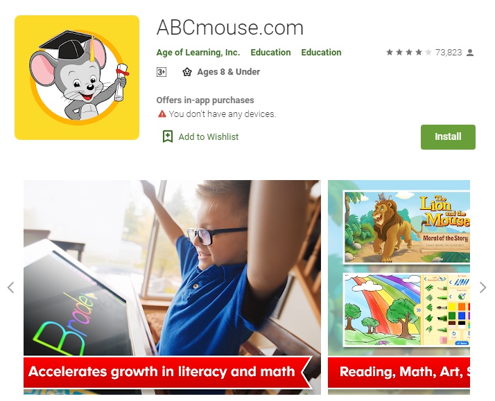 | ABC Mouse | A great choice for kids from 2-8 | Android, iOS, PC |