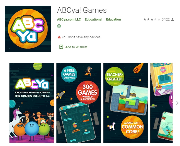| ABCya | Hundreds of games up to the 6th grade | Android, iOS |