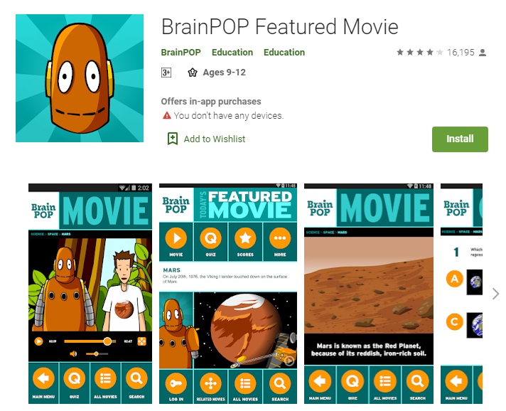 | BrainPop | Video snippets make learning easier | Android, iOS, PC |