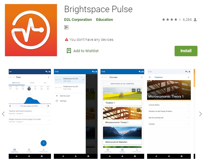 Another classroom management app, especially popular on college campuses, the Pulse app is compatible with all students taking D2L/Brightspace courses online. Online students will never miss an update with this convenient learning platform.