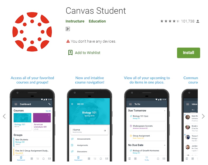 | Canvas Student | Classroom management for students | Android, iOS, PC |