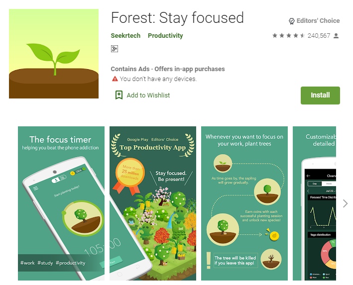 Through a fun method of growing a virtual forest, this unique time management app helps students and individuals of all ages be more productive and stay focused. Students simply set a timer to focus on the task at hand, such as studying, and a tree begins to grow. Best of all, the app penalizes players for wasting time on distracting activities such as social media. It may sound silly, but thousands of reviewers say—it works!
