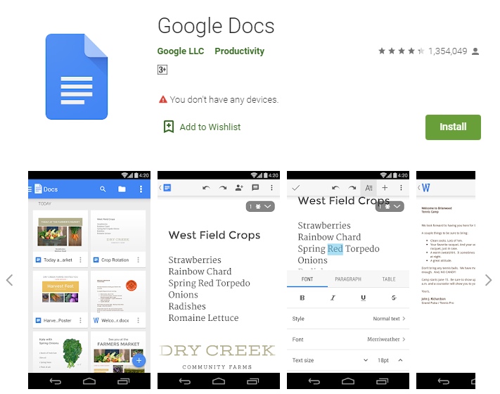 | Google Docs | Easy to create and share documents | Android, iOS, PC |
