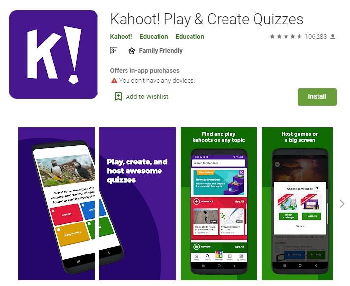 | Kahoot! | Perfect for designing fun trivia quizzes | Android, iOS, PC |