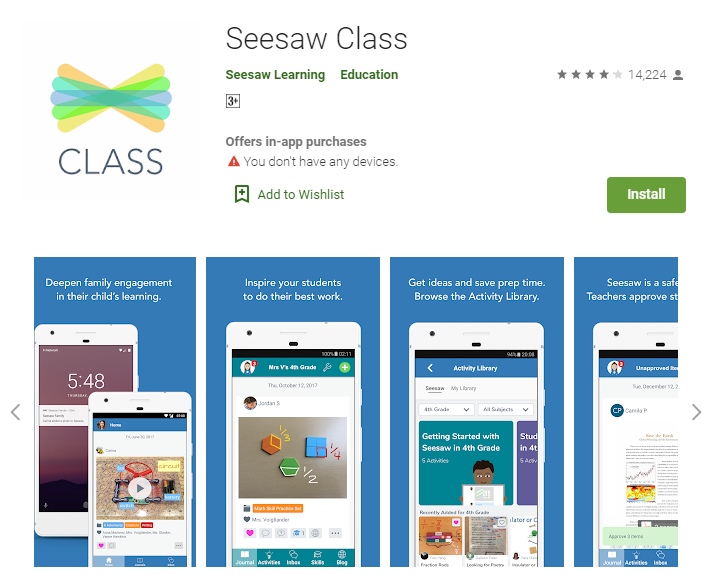 | Seesaw | Ideal for classroom management | Android, iOS, PC |