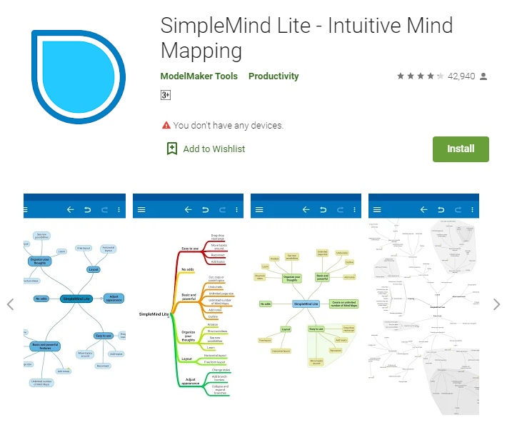 | SimpleMind | Make a mind map and help organize ideas | Android, iOS, PC |