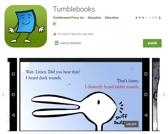 | TumbleBooks | An interactive reading platform | Android, iOS, PC |