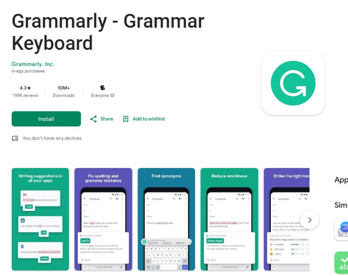 | Grammarly | Proofread and improved writing | Android, iOS, PC |