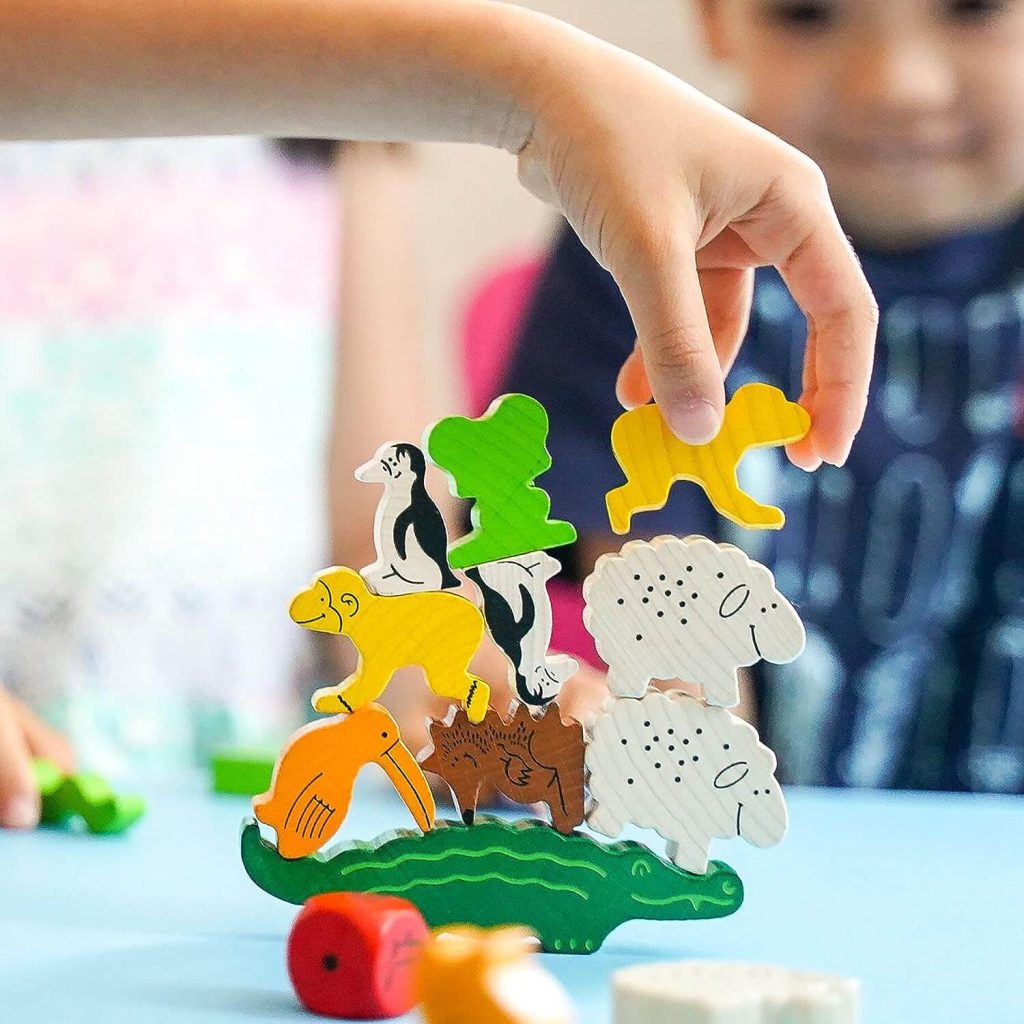 Animal Upon Animal is an educational game with 29 wooden animals and a die with corresponding symbols. The aim of the game is to stack as many animals, one atop the other until a player has no animals left. An added bonus? This game helps kids to get creative with problem-solving, develop fine motor skills, and refine hand-eye coordination.