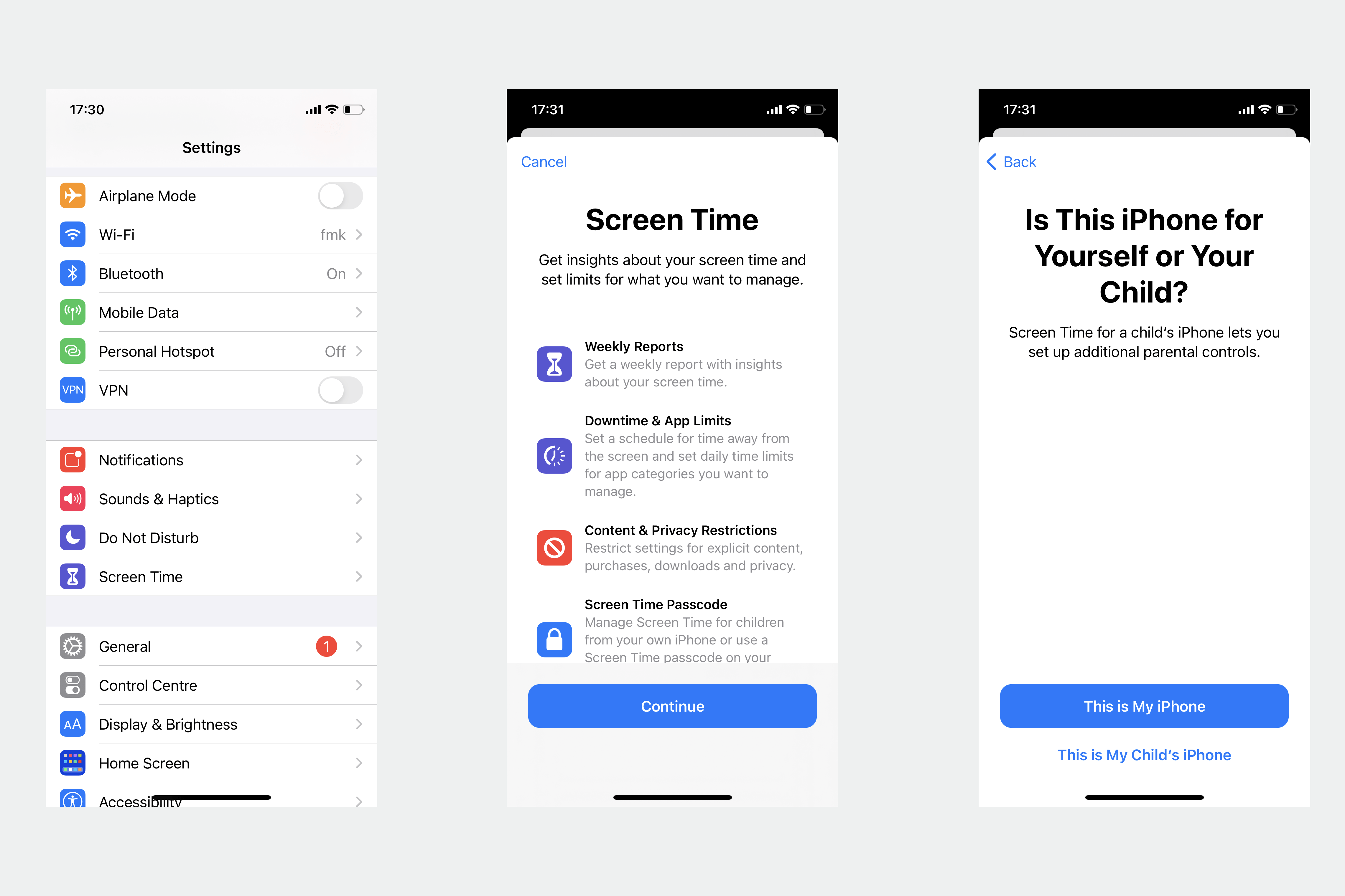 - Go to Settings, Screen Time, and enable this feature. Read what’s presented to you on the screen, then tap Continue. You will then be asked if the update is for you or your child. Select the option that applies.