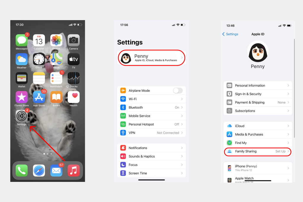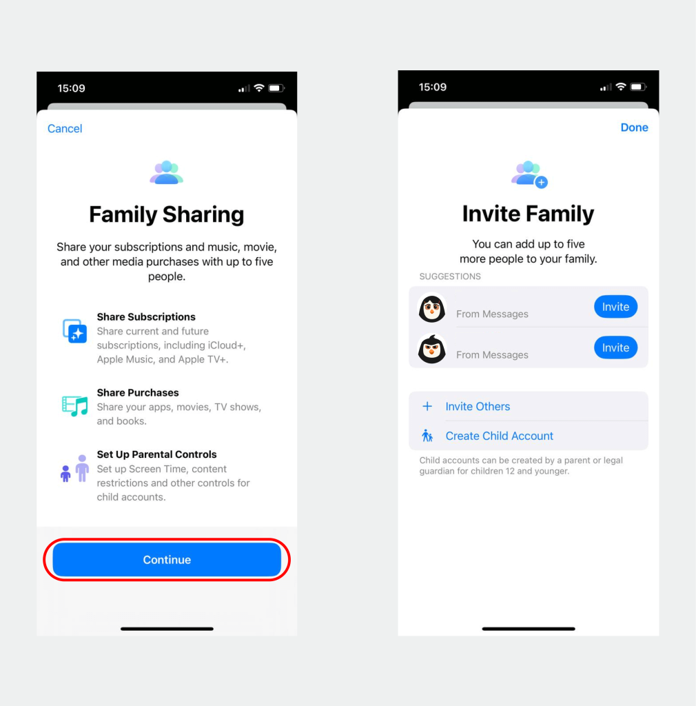 Setting up Family Sharing is necessary if you want to adjust privacy settings and other parental control options on your child’s device. Here’s a short guide on using Family Sharing on your phones: