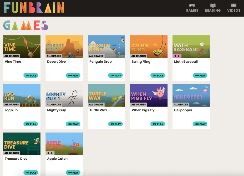 Funbrain has a large library of educational games for children ages pre-K to 8th grade. They can work on their reading and math skills with the hundreds of games available on the website. Or, they can watch educational and entertaining videos that coincide with the characters in the games.