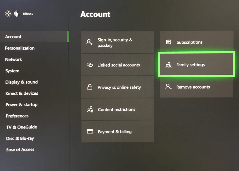 - Select Settings > Parental Controls/Family Management > Family Management.