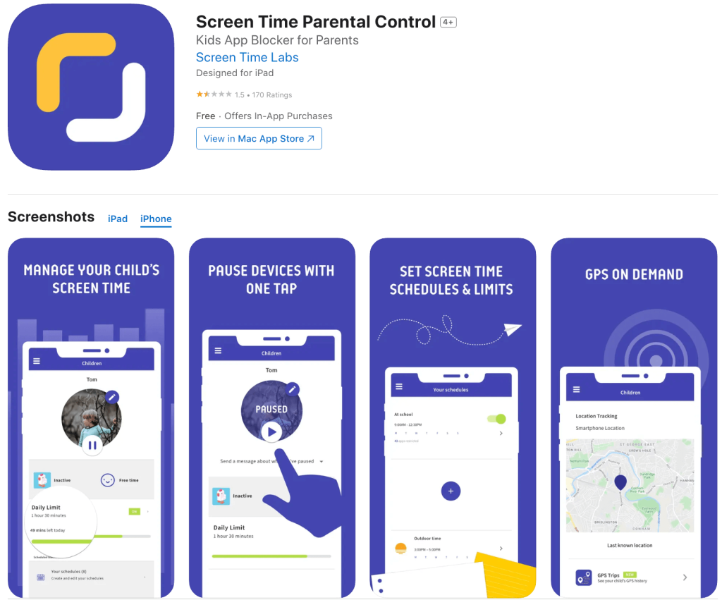 It’s another of those parental control apps that offer a wide range of different features. However, it focuses on screen activity. The main features of Screen Time include:
