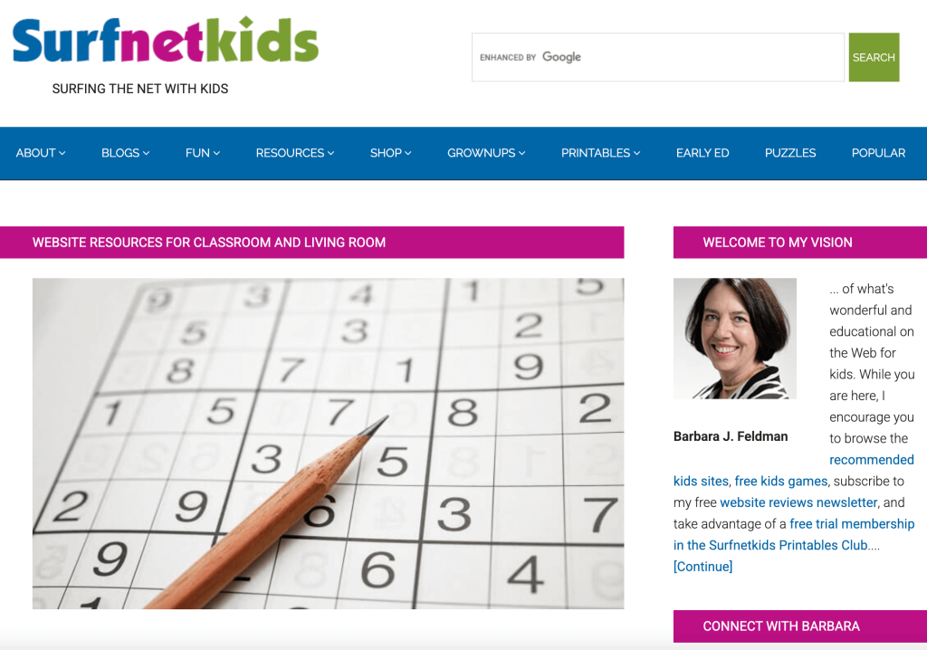 Surfnetkids, also known as Surfing the Net with Kids, is a trusted learning resource that has been around for years. It curates educational websites, games, puzzles, and printables, all designed to help children learn while surfing the net safely. Parents and teachers will appreciate the added tech tips and annotated links, which act as built-in content filters to guide kids to reliable information.