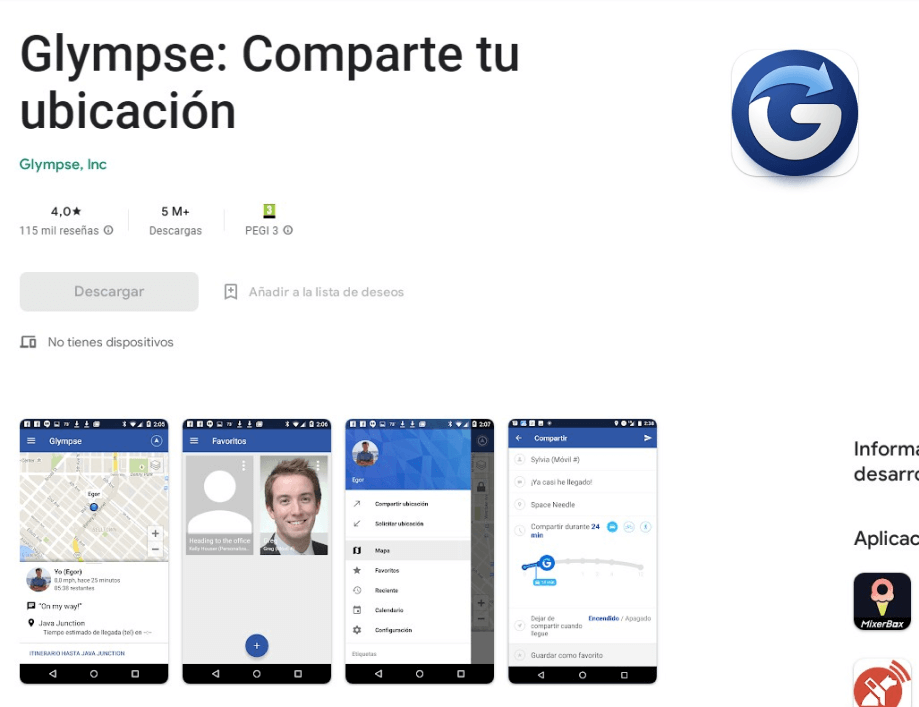 Glympse puede rastrear la ubicación, la distancia recorrida y ayudar a cumplir metas, controlar el tiempo de pantalla y la actividad de los miembros de la familia. También es utilizada por empleadores para ayudar a monitorear la producción de sus empleados. Es una excelente aplicación para rastrear a los adolescentes de la misma manera.