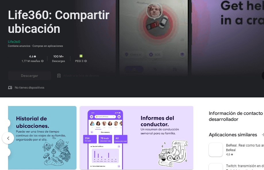 Esta aplicación de seguimiento te permitirá recibir notificaciones, rastrear el historial de ubicaciones e incluso escuchar el entorno de tu hijo (esta función no está disponible en iPhone). Tu hijo también puede enviar una señal de SOS si siente que está en peligro.