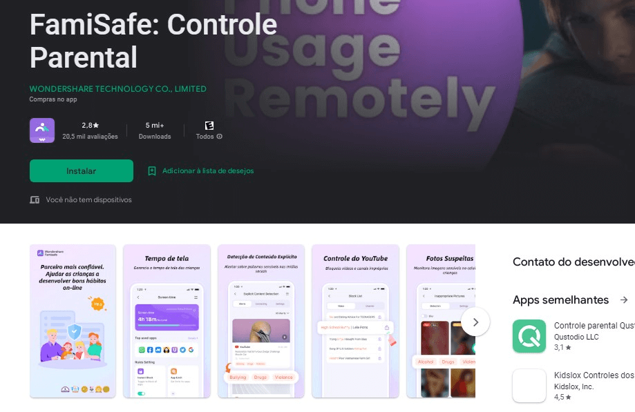 - ele também é um aplicativo de controle parental com limites de tempo de tela e outras funcionalidades;