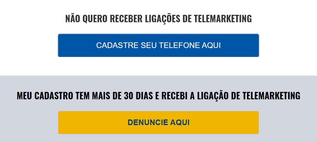 Faz alguns anos o PROCON, ou Fundação de Proteção e Defesa do Consumidor, lançou este sistema, que pode ser usado para solicitar o bloqueio de qualquer companhia que faz ligações de telemarketing. Para isso, basta cadastrar o seu número de celular e CPF na página correspondente ao seu estado. Pesquise no Google «Procon bloqueio de números» + o nome do seu estado e siga as instruções da página correspondente.