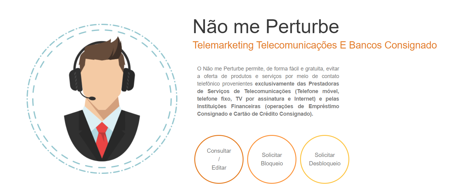 Quer se poupar dor de cabeça futura? O Não Me Perturbe é um ótimo recurso para evitar receber ligações de companhias financeiras e de telecomunicações. Basta entrar no site e fazer o seu cadastro, solicitando a seguir o bloqueio deste tipo de ligação. Note que, após o cadastro, pode-se levar até 30 dias para que o bloqueio entre em vigor e você pare de receber ligações destas companhias.
