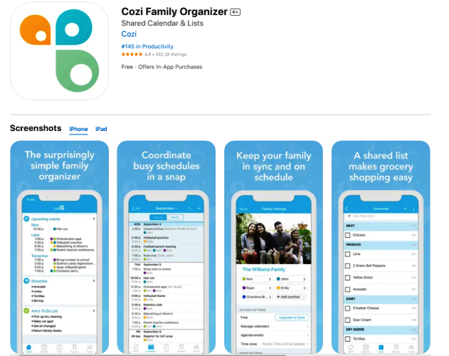 | COZI FAMILY ORGANIZER | Organizing | iOS, Android | FREE (In-app purchases) | 4.7/5 |