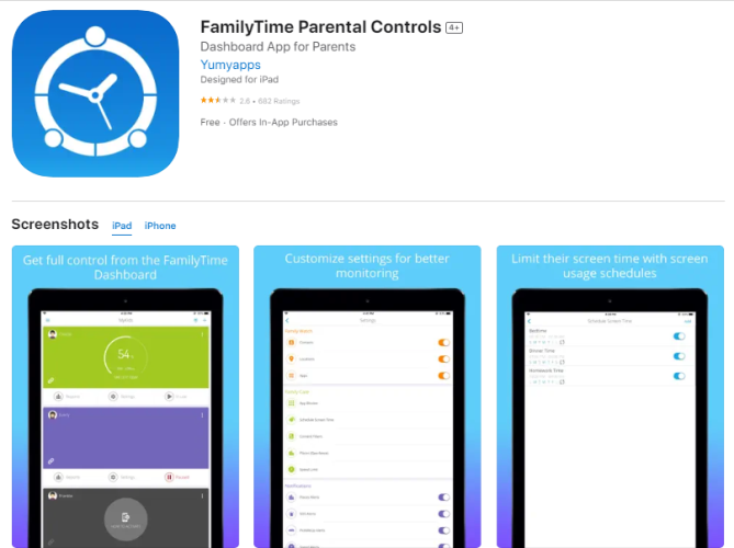 | FAMILYTIME | Parental Control | iOS, Android, Web | FREE | 2.7/5 |