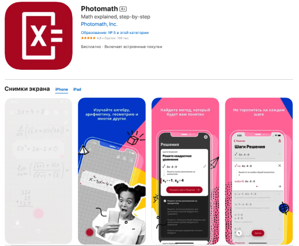 | PHOTOMATH | Education | iOS, Android | FREE | 4.4/5 |