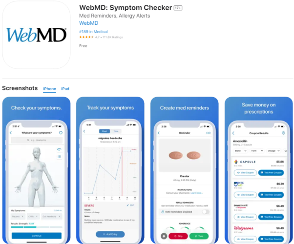 Where to Download: WebMD is available online or as an app for both Android and iOS.