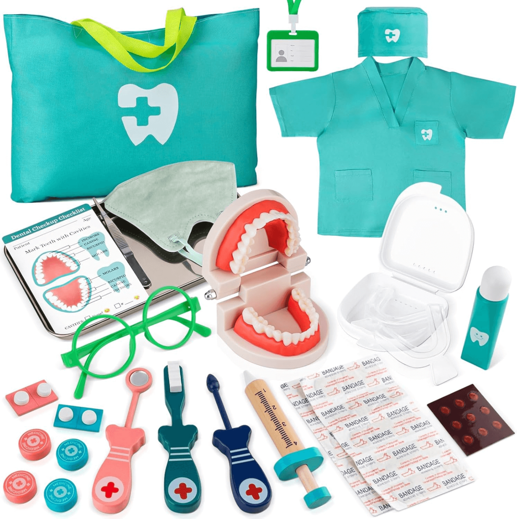 This play-set comprises everything your 3-year-old needs to pretend to be a dentist, including a costume, a range of tools, a storage bag, and a set of model teeth. As well as being a great opportunity for role play, this set can help young children who are nervous about visiting the dentist’s office feel a little more confident.