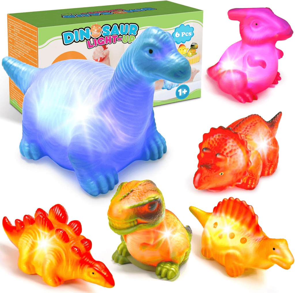 - Light-Up Floating Dinosaur Bath Toys — $14.99. Cute floating dinos that glow when they hit the water, adding a magical touch to bath time.