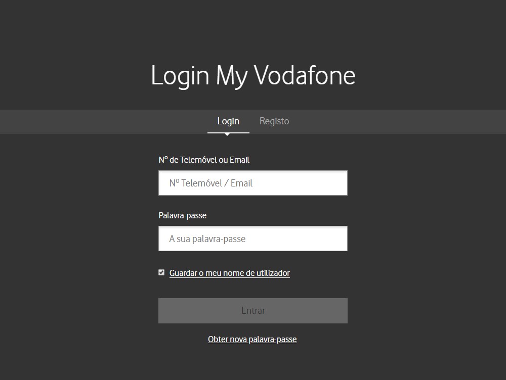Por exemplo, no site da Vodafone Portugal, para entrar na sua conta pessoal, você precisa clicar em Log in / Registar aqui.