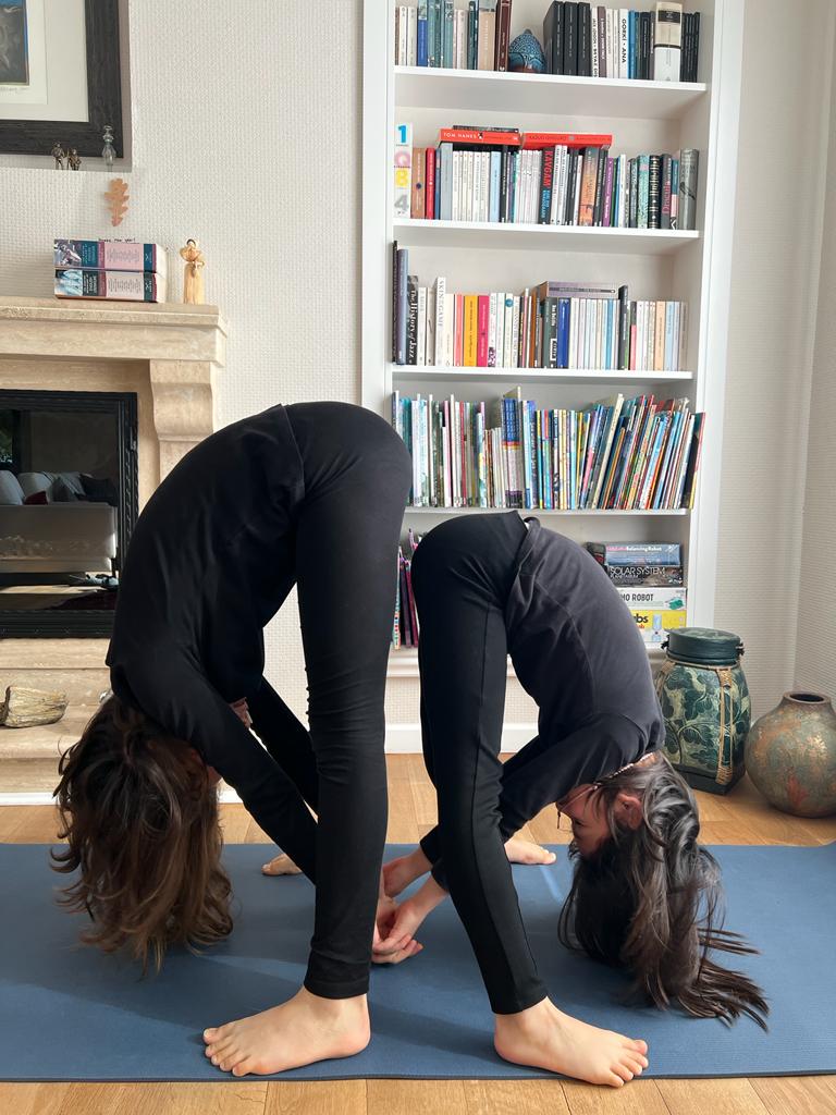 The front chair yoga pose reverses the back-to-back chair benefits pose. Let both kids stand facing each other and then hold both hands together. Let them move back slowly until both hands are fully stretched. Gradually, both kids should continue to go down until they both assume a chair position facing each other. The goal is also for both kids to learn to support each other and develop self-respect.