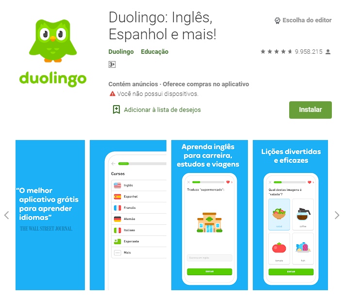 Com foco em crianças até 8 anos de idade, esse é um app popular que permite o aprendizado de línguas em um ambiente seguro e divertido. As diversas opções de estudo permitem ao aluno acompanhar seu progresso de forma lúdica e envolvente.