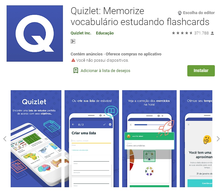 Usado por pessoas de todas as idades, esse aplicativo de flashcards ajuda as crianças a estudar, praticar e memorizar qualquer coisa. O usuário pode criar seus próprios flashcards ou acessar materiais de estudo criados por outros estudantes. Pais e professores podem criar pilhas de flashcards e testes para o estudo das crianças.